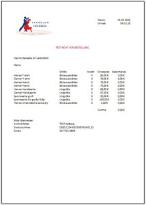 Bestellliste, Test